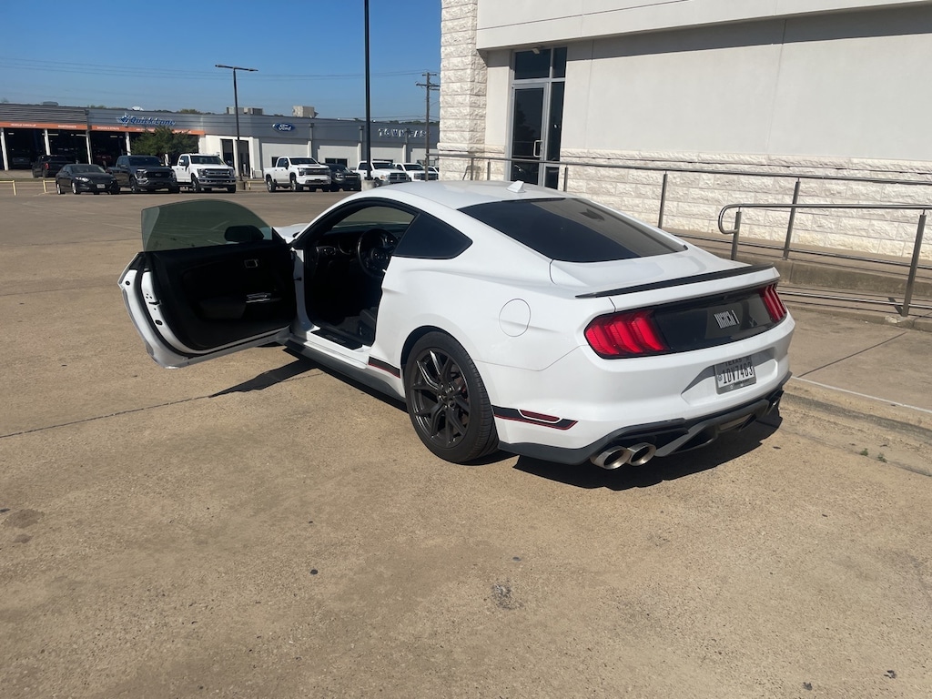 Step into the world of high-performance driving with the 2021 Ford Mustang Mach 1, a vehicle designed for those who crave the thrill of the road. This Oxford White beauty is not just a car; it's a statement of power and precision. Under the hood, the 5.0L V8 Ti-VCT engine roars to life, delivering an exhilarating driving experience that Mustang enthusiasts will appreciate. The 10-speed automatic transmission ensures seamless gear shifts, allowing you to harness the full potential of its 480 horsepower. The Mach 1's aerodynamic design and aggressive stance are complemented by its advanced suspension system, providing exceptional handling and control on every twist and turn. Inside, the cockpit is tailored for the driver, featuring a performance-oriented digital cluster and a steering wheel with paddle shifters for those who desire a more hands-on approach. The Mach 1's unique styling cues, including exclusive badging and a distinctive front grille, make it stand out on the road. If you're looking for a used car that embodies the spirit of American muscle with modern sophistication, the 2021 Ford Mustang Mach 1 is your ultimate ride.