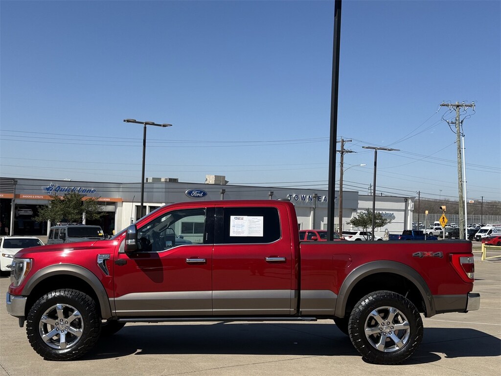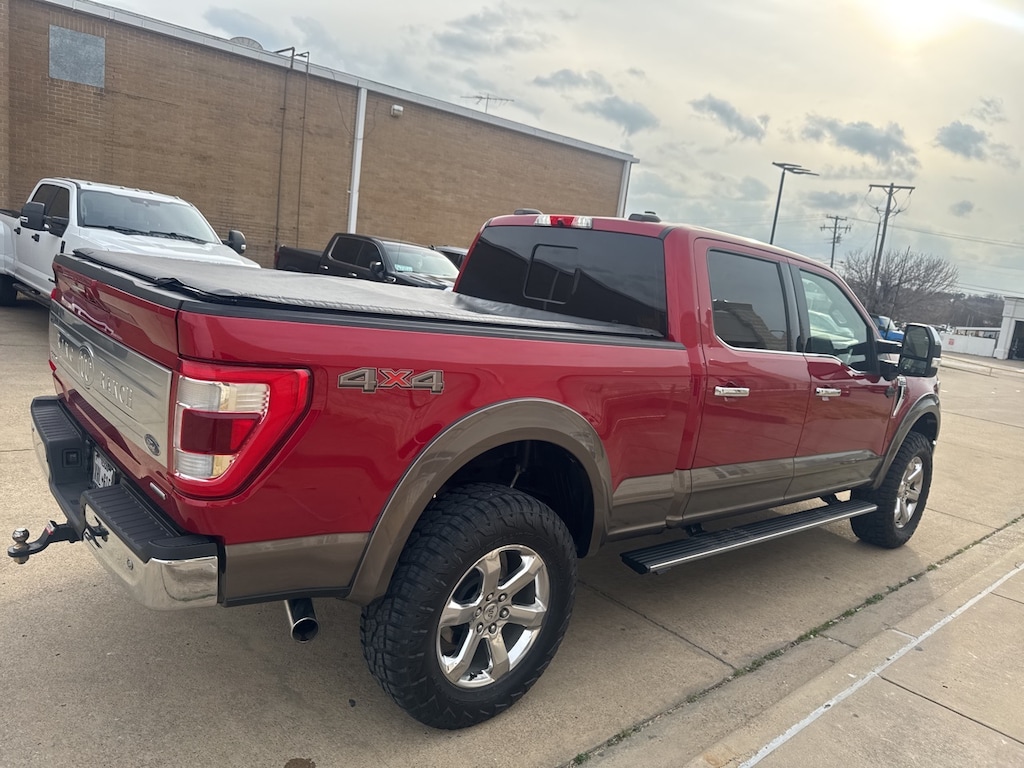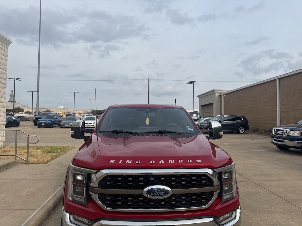 For those who demand more from their truck, the 2021 Ford F-150 King Ranch is a perfect match. This used powerhouse, dressed in a striking Rapid Red Metallic Tinted Clearcoat, offers a robust 3.5L V6 Ecoboost engine, delivering the performance and efficiency that Ford enthusiasts crave. The 10-speed automatic transmission ensures seamless power delivery, while the four-wheel drive capability provides unmatched traction and control, making it ideal for both rugged terrains and smooth highways.