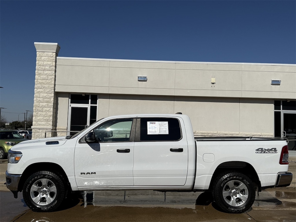 The bright white clearcoat exterior complements its rugged 4D crew cab design, making a statement wherever you go. Whether you're towing with the integrated tow hitch or enjoying the privacy glass on a scenic drive, this truck is designed for those who refuse to compromise. With its blend of power, safety, and style, the 2023 Ram 1500 Big Horn/Lone Star is the ultimate companion for drivers who demand more.
